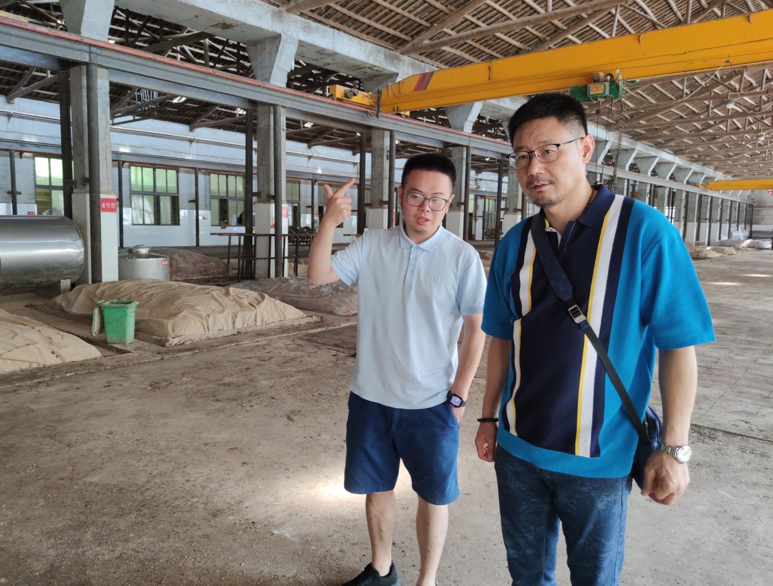 在醉方乐酒业负责人刘前灿先生的陪同下,谢海董事长前往酒厂参观酿造车间、制曲发酵仓、老酒库、包装车间。通过实地查看,听取酒企发展历程、轨迹、酿造历史,详细了解了酱香酒的酿造工艺,生产、包装工艺、产品质量、销售渠道等方面的情况。